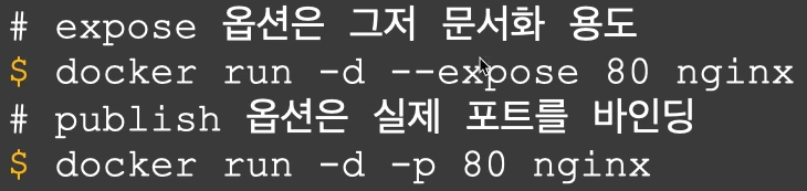 다음으로 expose와 publish 옵션에 대해 알아보자