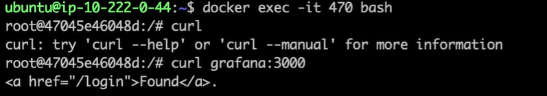 내부 도메인이 생성된 걸 볼 수 있고 nginx와 grafana가 동일한 브릿지 네트워크로 생성된 것이다.