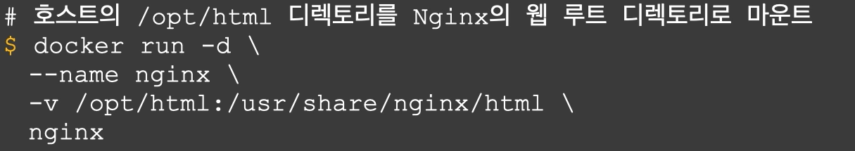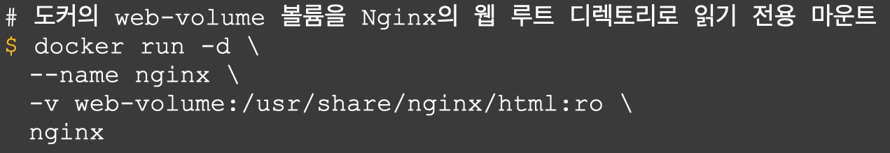 읽기전용 마운트는 변경이 돼서는 안되는 디렉토리나 파일을 연결할 때 지정한다.