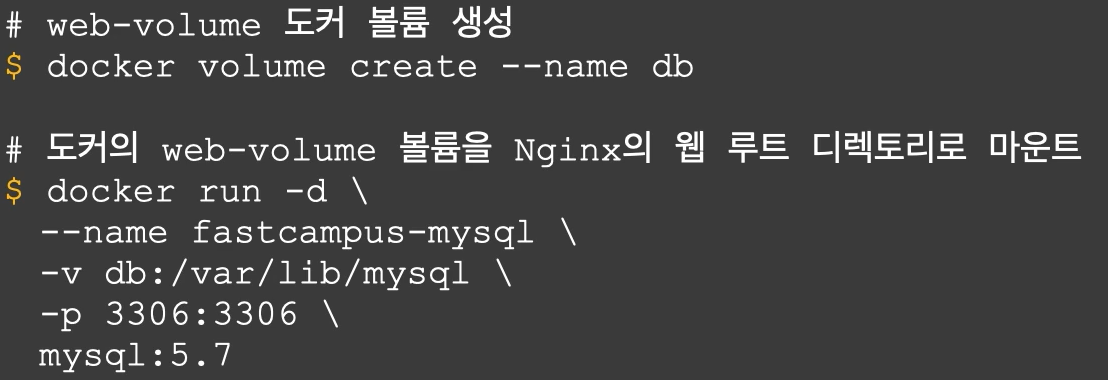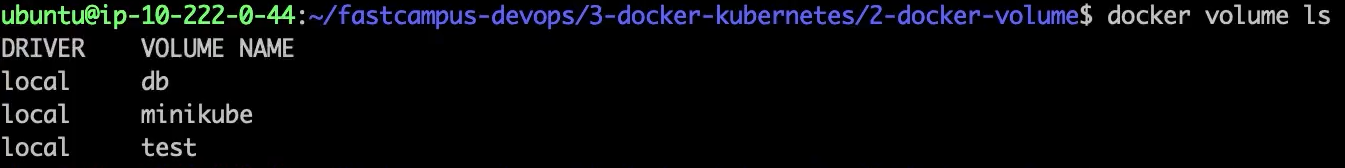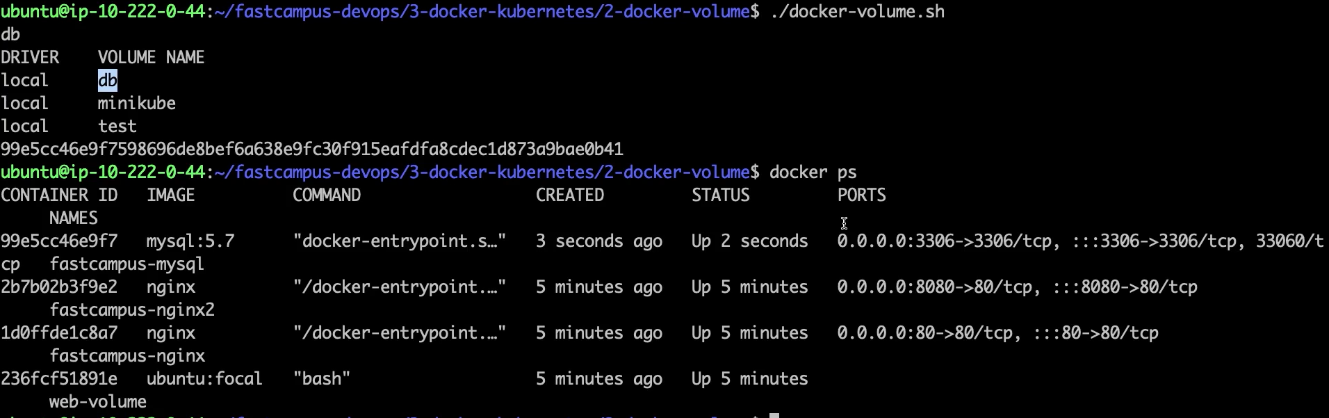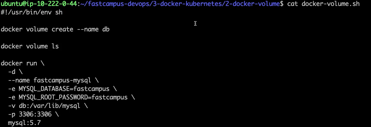 docker-volume.sh를 보면 docker volume create라는 명령어를 통해서 db라는 이름의 볼륨을 생성하고