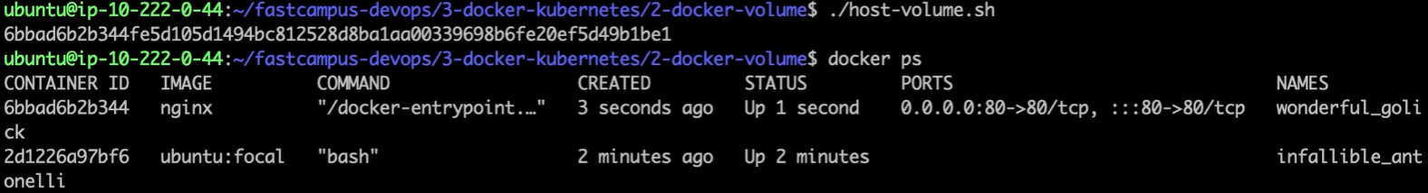 host-volume.sh를 실행시키면 nginx 컨테이너가 실행된다.