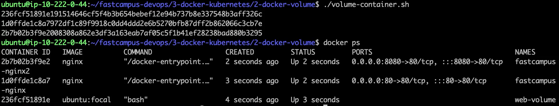 volum-container.sh 파일을 보면 세 가지 docker run 명령어가 있다.