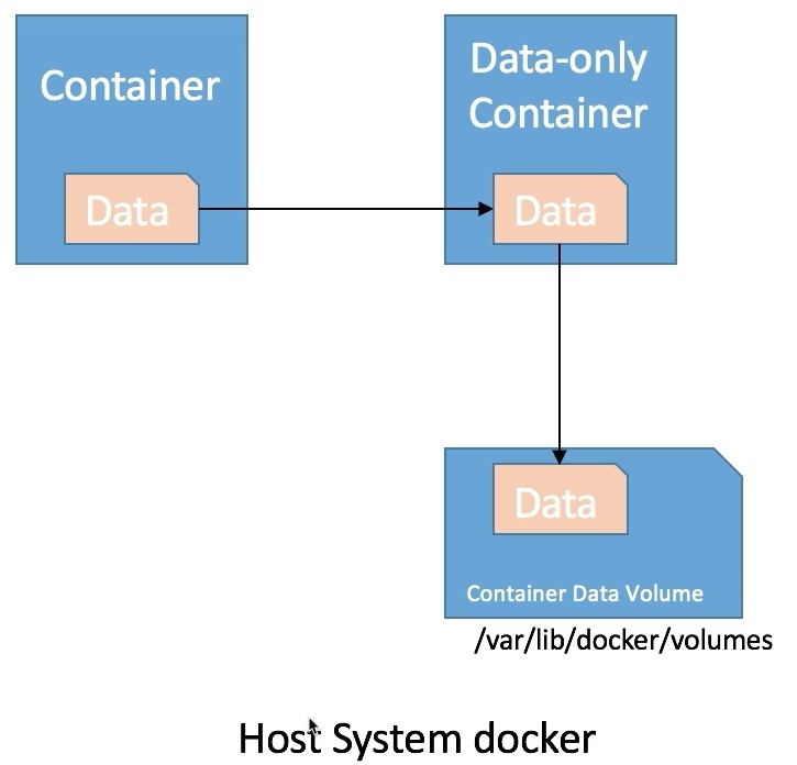특정 컨테이너의 볼륨 마운트는 공유할 수 있다. 아래 그림에서 Data-only Container가 볼륨 컨테이너이다.