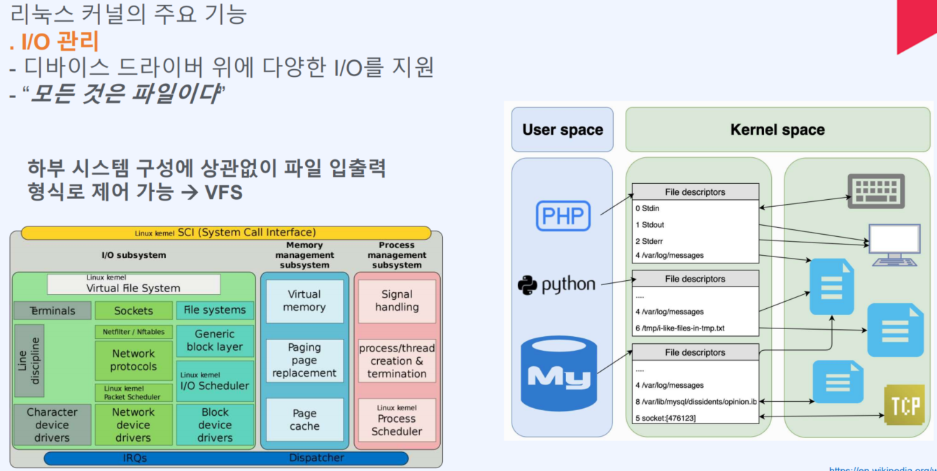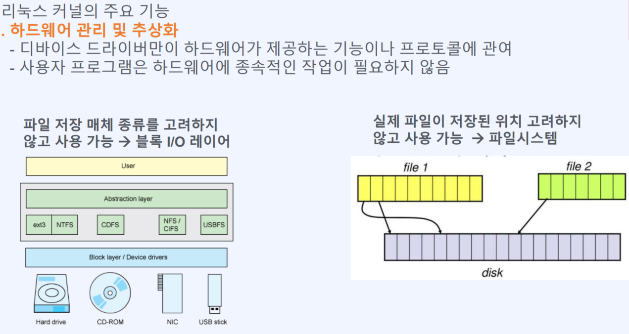 또한 운영체제의 다른 부분 및 응용 프로그램 수행에 필요한 여러 가지 서비스를 제공한다.