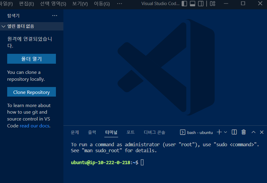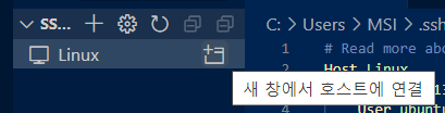 새 창에서 호스트에 연결 버튼을 누르면 이제 vscode로 ssh 접속을 할 수 있다.