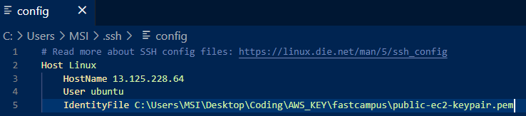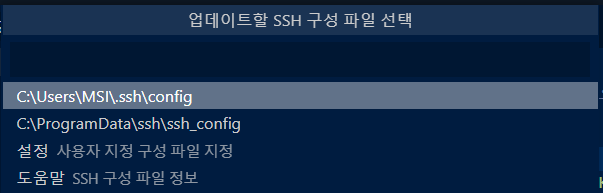 SSH 호스트 구성을 클릭한 후 사용자의 파일경로를 선택한다.