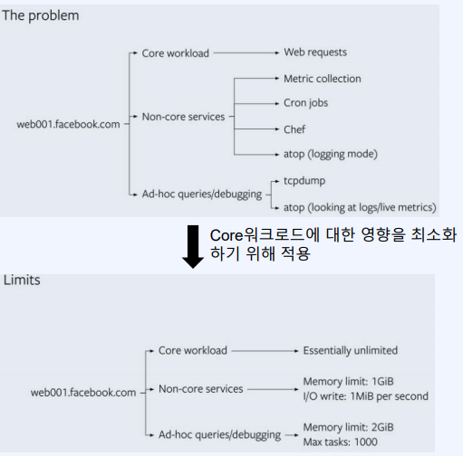 * 모든 프로세스에 대해 리소스 사용 정보를 수집 - 제한 가능한 자원: CPU, Memory, Network, Device, Block I/O