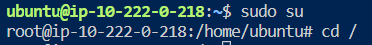 1. sudo su 명령어로 루트 계정으로 전환한다.