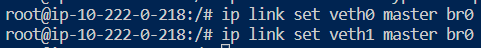 10. ip link set [veth0 | veth1] master br0 명령어로 veth0와 veth1을 br0에 연결하고