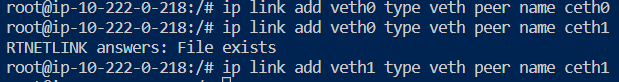 ip link set [veth0 | veth1] up 명령어로 veth0와 veth1을 시작한다.