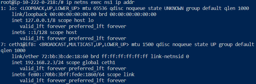 ns0와 ns1에 loopback 디바이스가 설치된 걸 볼 수 있다.