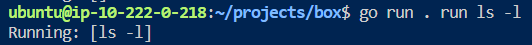 go run . run ls -l 명령어를 통해 실행해보면 잘 출력이 된다.