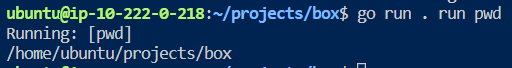 go run . run pwd 명령어를 통해 실행하면 현재 디렉토리 목록이 커맨드에서 잘 출력된다.