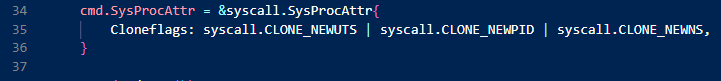 cmd.SysProcAttr를 통해 프로세스를 생성할 때 CLONE_NEWUTS라는 attribute를 지정했다.