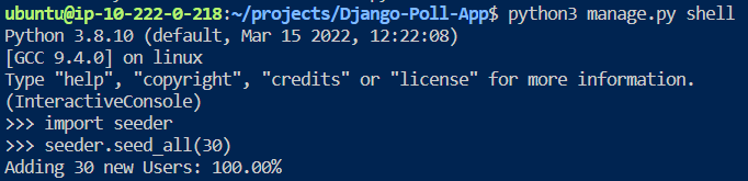 seeder.seed_all(30) 명령어를 통해 더미 데이터 30개를 생성한다.