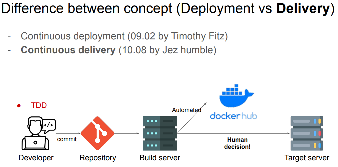 CD는 개발자의 변경 사항이 레포지토리를 넘어, 고객의 프로덕션(Production) 환경까지 릴리즈 되는 것을 의미한다.
