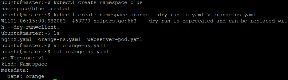 kubectl create namespace [namespace 이름] --dry-run -o yaml > [파일이름].yaml