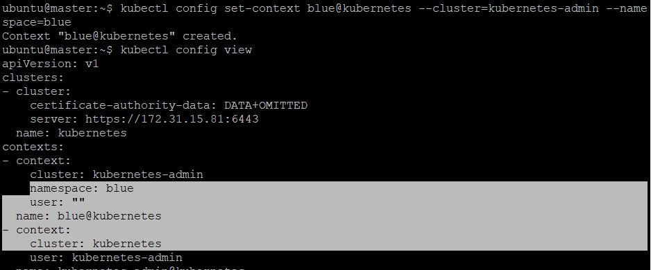 kubectl config set-context [이메일 주소] --cluster=kubernetes-admin --namespace=[이름]