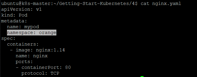 nginx.yaml에 namespace를 설정하면 namespace옵션을 넣어주지 않아도 저절로 지정된 namespace에 파드가 생성된다.