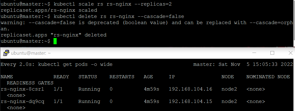 kubectl delete rs rs-nginx --cascade=false를 하면 pod는 살아있고 컨트롤러만 죽는다.