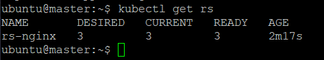 kubectl get replicaset 또는 kubectl get rs을 통해 확인할 수 있다.
