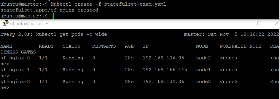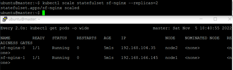 kubectl scale statefulset sf-nginx --replicas=2을 통해 scalein하면 sf-nginx3, sf-nginx2가 삭제된다.