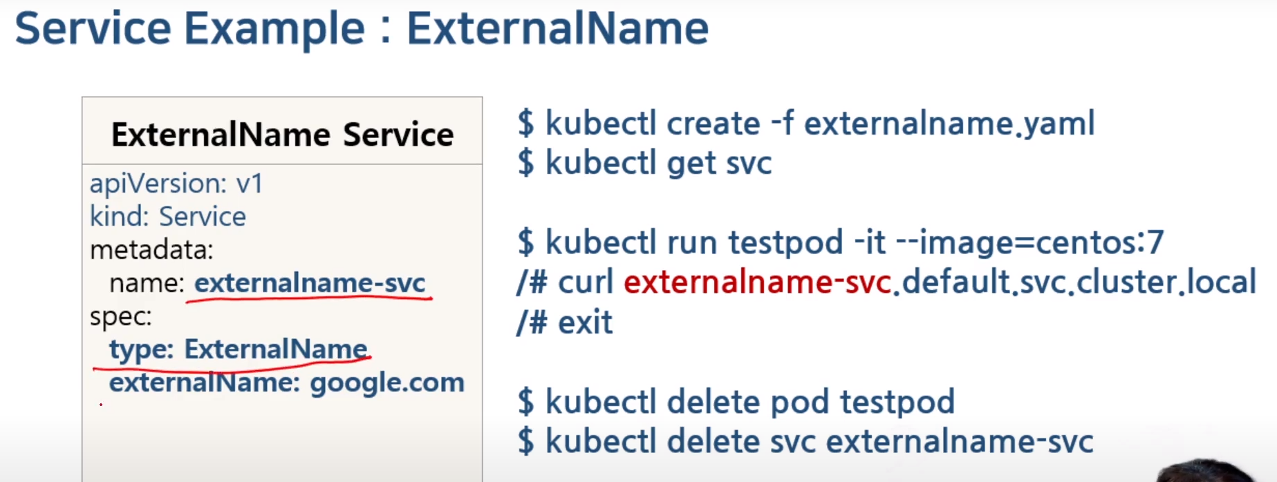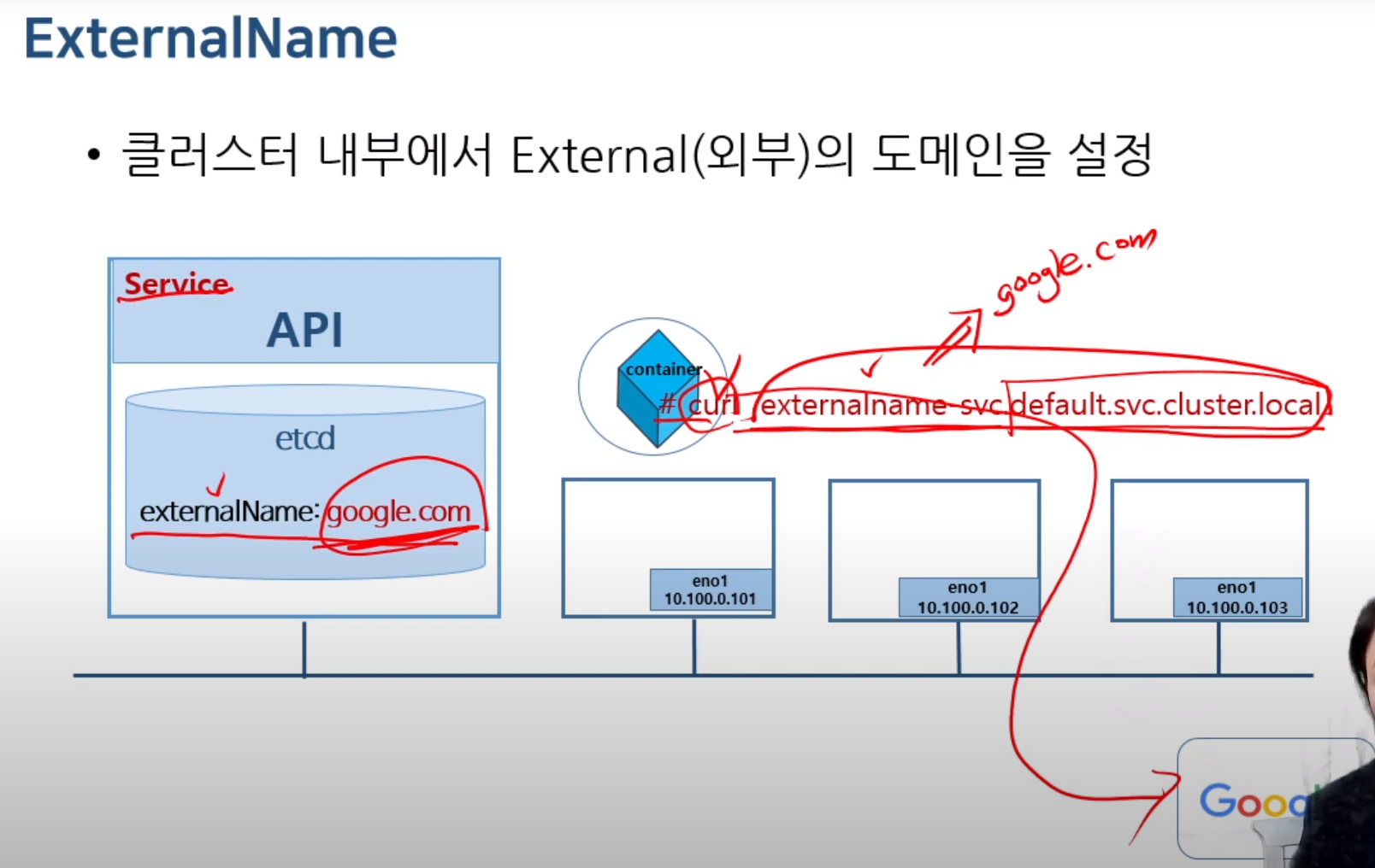 curl externalname.svc.default.svc.cluster.local 명령어를 치면 google.com(externalName 설정값)으로 포워딩 시켜준다.