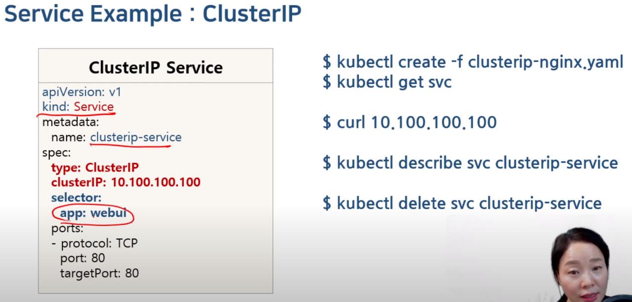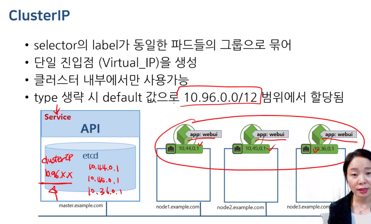 clusterip는 단일 진입점을 만들어주는 가장 기본적인 service 타입이다.