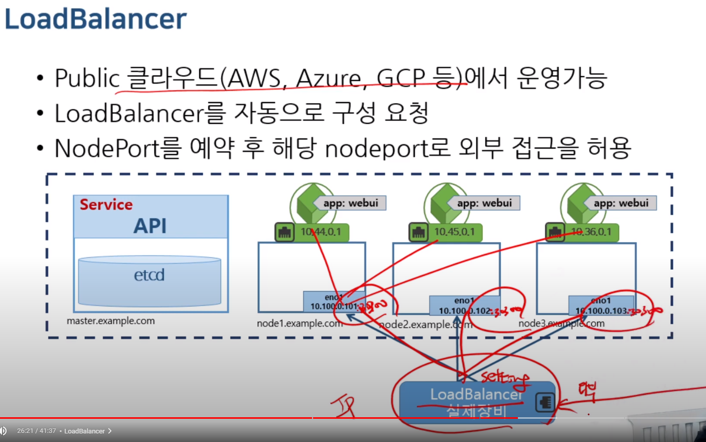 따로 열 필요 없이 type: LoadBalancer로 자신만의 NodePort를 하나 연다.