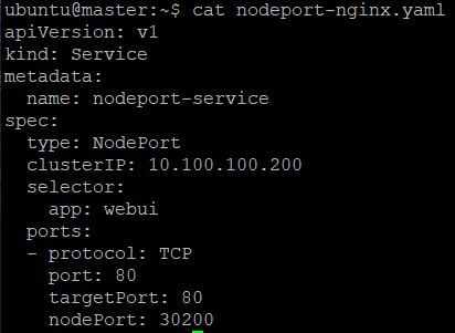 clusterip는 10.100.100.200으로 설정하고 nodeport는 30200번이다.
