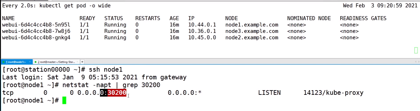 node에 ssh접속해서 netstat -napt | grep 30200 으로 30200번 포트가 연결되어 listen 상태인걸 확인할 수 있다.