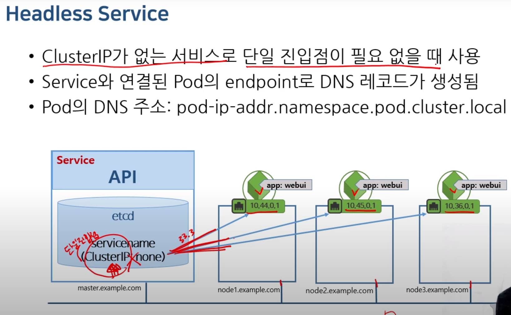 클러스터 ip가 없는 서비스로 단일 진입점이 필요 없을 때 사용한다.