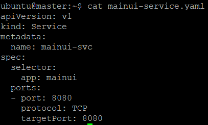 mainui-service.yaml 파일의 내용은 아래와 같다.