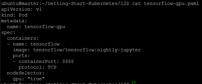 이제TensorFlow라는 gpu가 요구되는 애플리케이션 파드를 실행해보기 위해서 먼저 tensorflow.yaml 파일의 내용을 보자