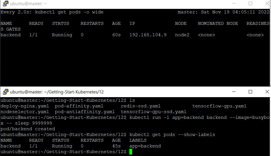 이는 레이블이 app=backend인 노드2에서 동작하고 있는 것이다.