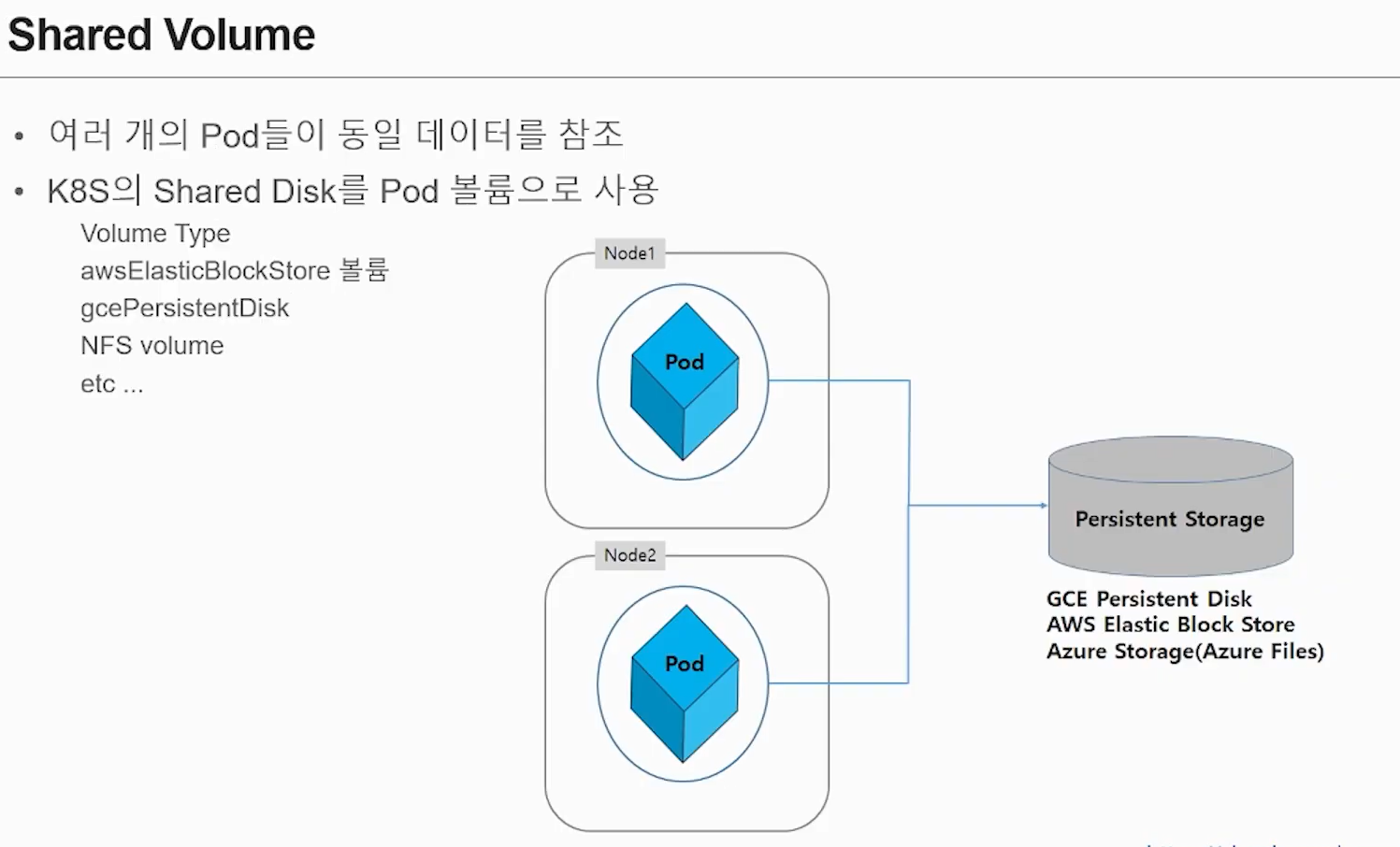 NFS 서버는 shared storage 공간을 지원한다.