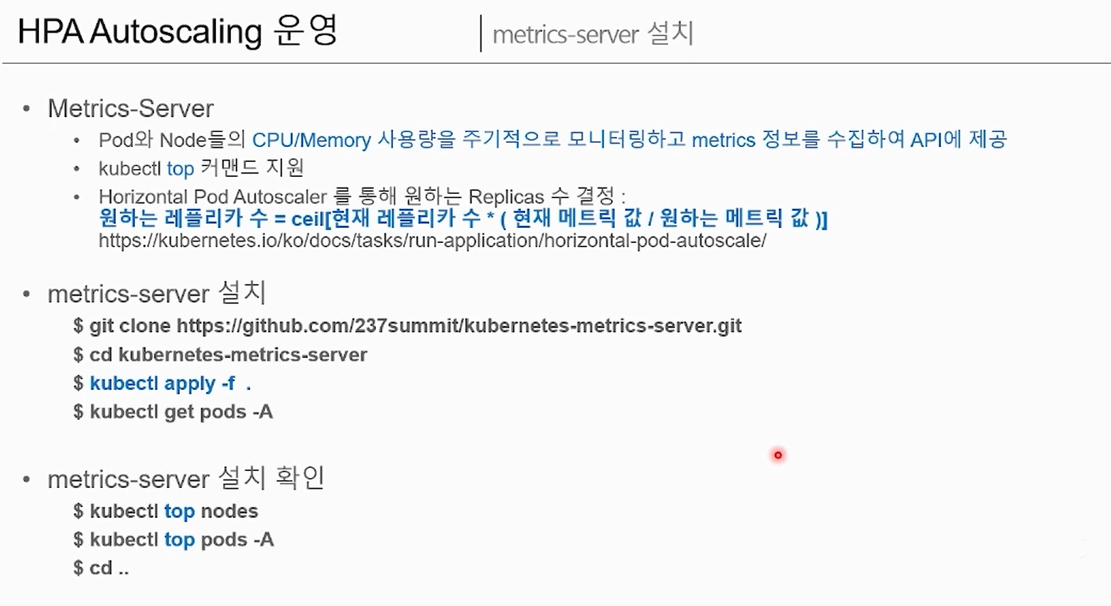 kubetctl top nodes 로 metrics-server 설치 확인을 하자