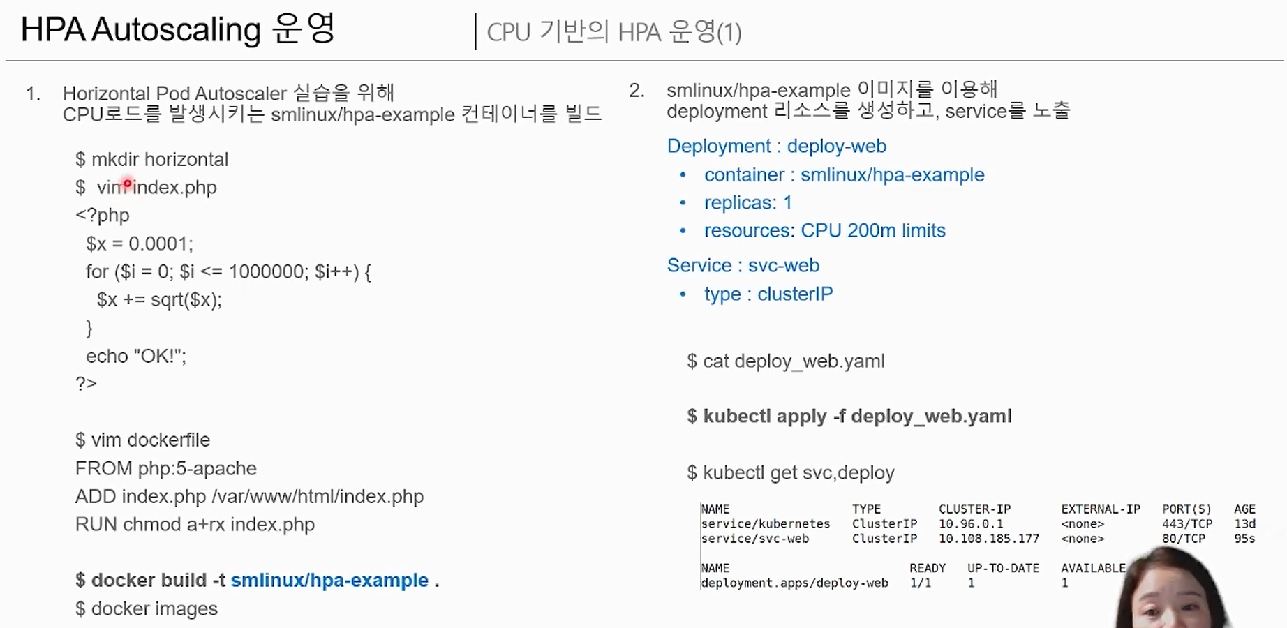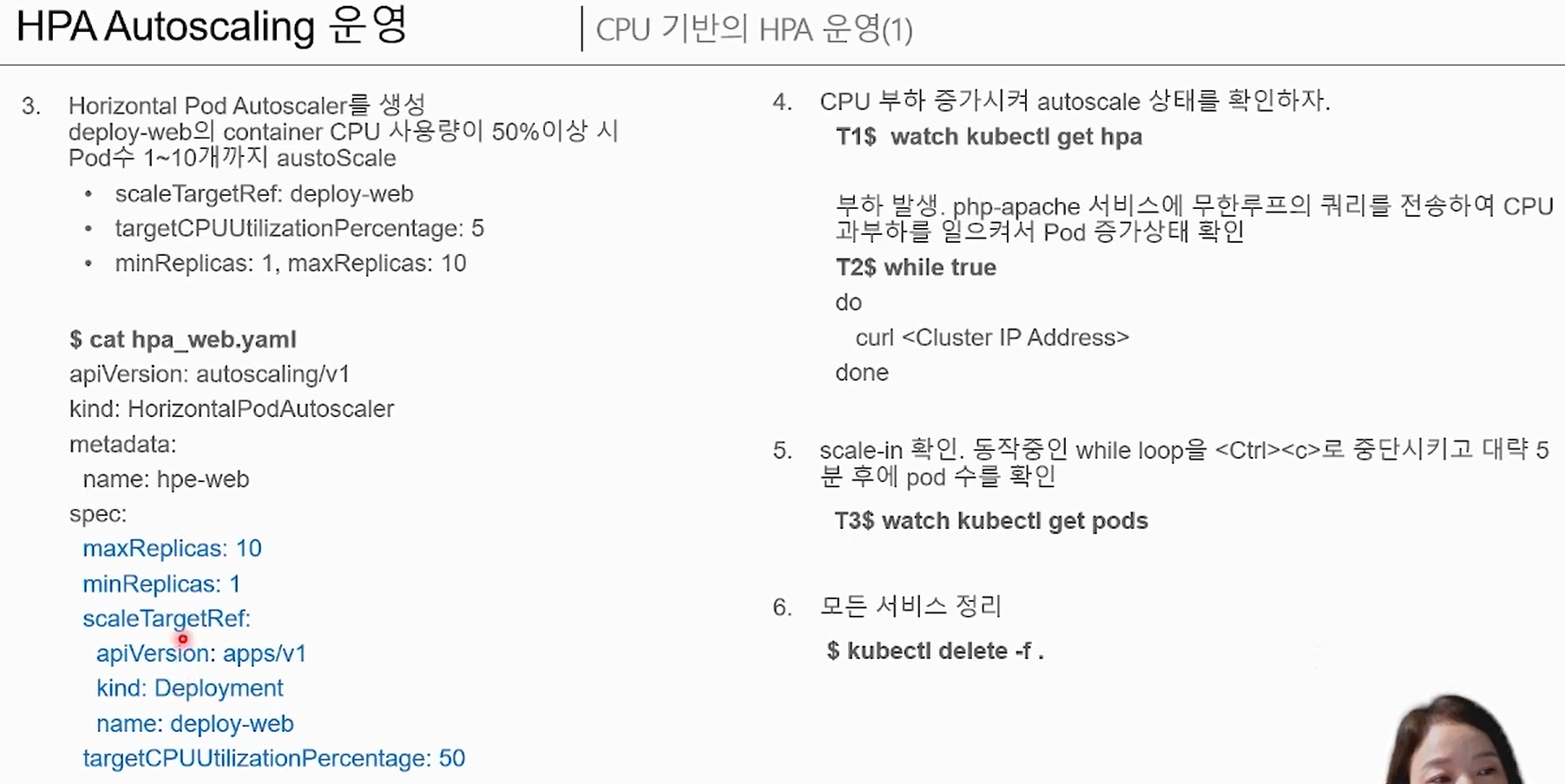 kubectl apply -f hpa_web.yaml 으로 HPA를 실행한다.