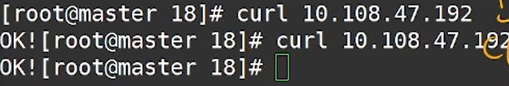 그리고 curl 10.108.47.192 을 통해 클러스터 ip로 접속하면 ok가 나오는걸 확인할 수 있다.