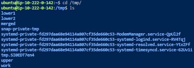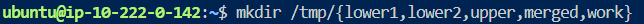 mkdir /tmp/{lower1,lower2,upper,merged,work}