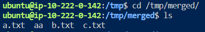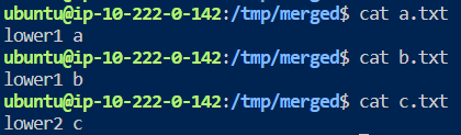 4. /tmp/merged 디렉토리의 a.txt 내용 확인