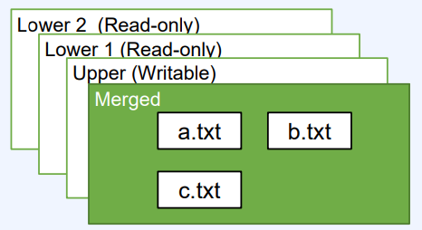 - OverlayFS로 union mount 진행