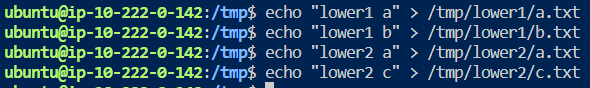 echo "lower1 a" > /tmp/lower1/a.txt