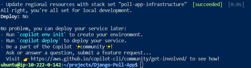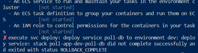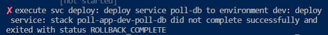 # ✘ execute svc deploy: deploy service poll-db to environment dev: deploy service: stack poll-app-dev-poll-db is currently being updated and cannot be deployed to