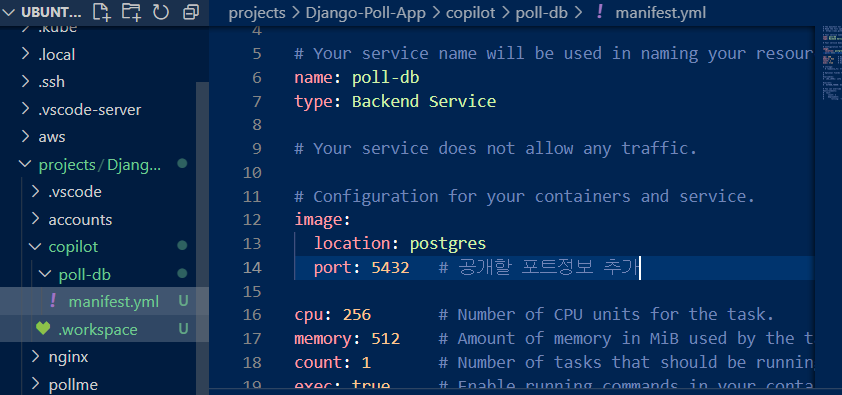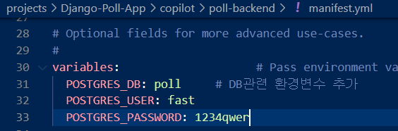 POSTGRES_DB: poll # DB관련 환경변수 추가