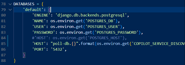 'HOST': "poll-db.{}".format(os.environ.get('COPILOT_SERVICE_DISCOVERY_ENDPOINT')),