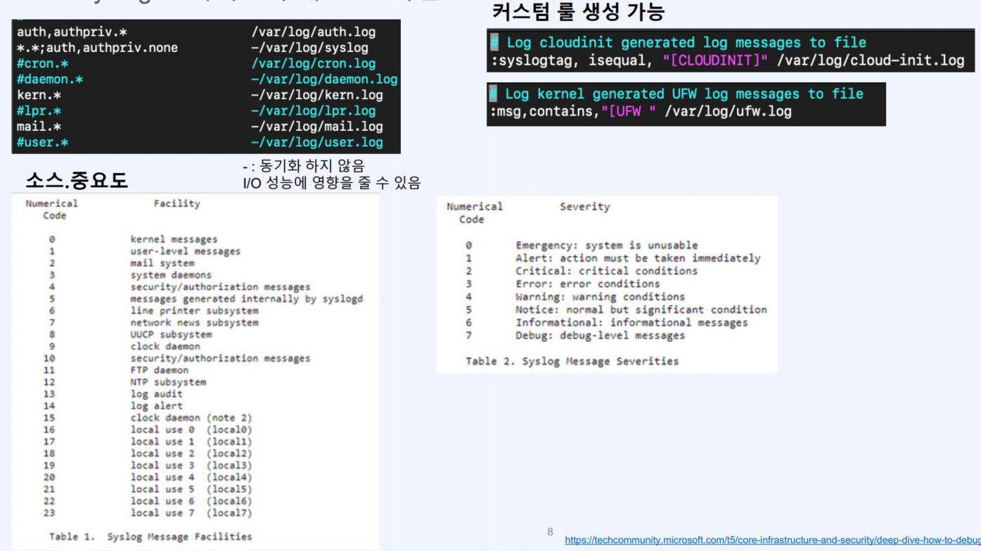 syslog -> 시스템 관리자는 소스(facility), 중요도(severity level)에 따라 메시지 정렬