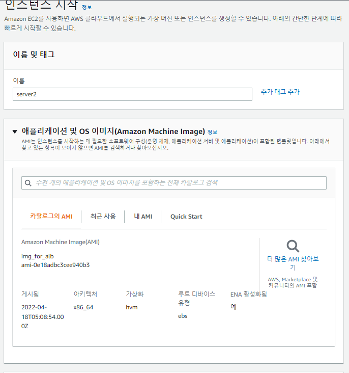 6. 하지만 우리는 지금 대상그룹에 인스턴스가 하나뿐임으로 로드밸런서를 제대로 활용하고 있지 않다. 따라서 똑같은 EC2 서버를 하나 더 만들자