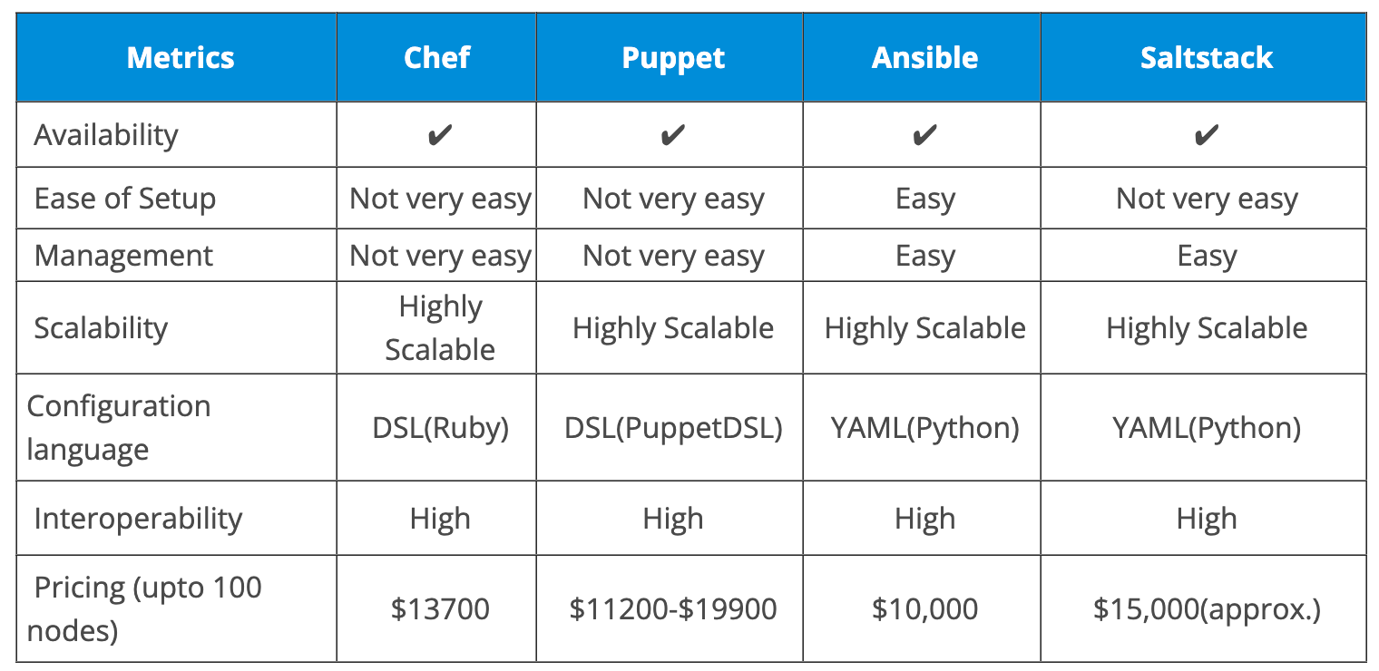 - 대표적인 도구 : Ansible, Salt, Puppet, Chef