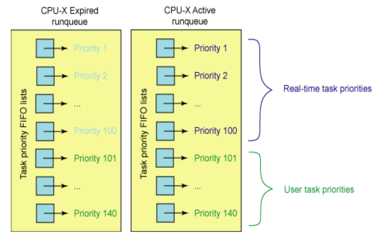 - 리눅스 커널 2.5 버전에서는 O(1) 스케줄러 사용